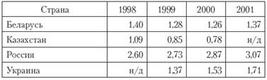 Национальная оборона в России, Беларуси, Казахстане и Украине финансируется в основном за счет центрального правительства, но в рассматриваемом периоде практически всегда и везде субфедеральные бюджеты участвовали в финансировании этой государственной функции. В Беларуси доля субфедерального уровня в общем объеме военных расходов не превышает 2%, в России и Украине – 1%. Исключением является Казахстан, для которого эта величина в 1998 г. составила 14,1% и к 2000 г. возросла до 20,2%.